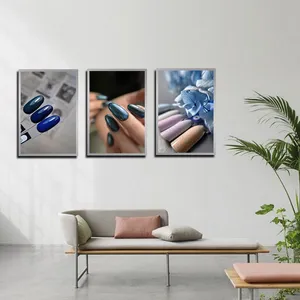 تابلو بکلیت طرح سالن زیبایی و کاشت ناخن مدل W-4074 فریم سفید مجموعه 3 عددی