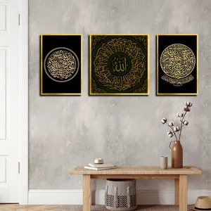 تابلو بکلیت طرح رزین مدل T-3978 فریم طلایی مجموعه 3 عددی