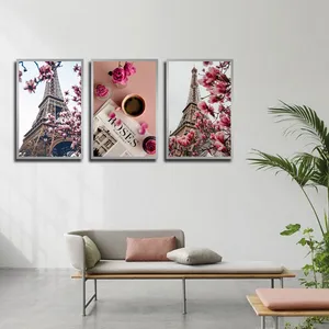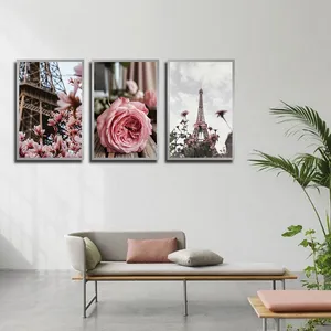 تابلو بکلیت طرح منظره برج ایفل مدل B-3909 فریم مشکی مجموعه 3 عددی