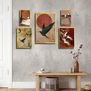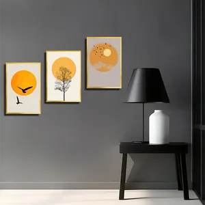 تابلو بکلیت طرح نقاشی پرنده و درخت مدل W-3884 فریم سفید مجموعه 3 عددی