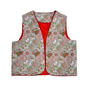 جلیقه از پارچه های تیکه دوزی شده و پارچه های کوک دوزی شده متنوع دارای جنس نخی میباشد. این جلیقه کاملا لایی و آستر کشی شده است که باعث ایستایی بالای جلیقه شده است. جنس جلیقه از سارج درجه یک میباشد. قد جلیقه 45 سانتی متر و یقه آن هفت است که باعث خوش فرم نشان دادن بالاتنه میشود. این جلیقه را به راحتی میتوان با بلوز و شلوار یا دامن استایل کرد. جلیقه کاملا تمیز و مزونی است.