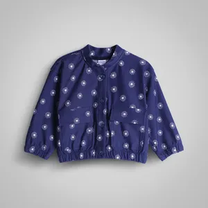 و چاپ ظریف نخلهای سفید، انتخابی شیک و چشمنواز برای استایلهای نیمهرسمی و روزمره کودکان است. طراحی یقه ب.ب گرد و خرگوشی جلوه زیبایی به لباس بخشیده و دکمههای سفید در قسمت جلو، هماهنگی زیبایی با طرح پارچه ایجاد کردهاند.
