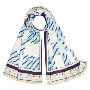 این شال نخی و طرح آن گوچی است، ترکیب رنگ آن آبی و زرد است. با توجه به جنس نخی آن روی سر اصلا لیز نیست، ابعادش استاندارد ۷۰ در ۱۹۰ یانتی متر است و کاربرد چهار فصل دارد.