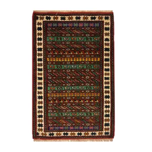فرش دستبافت دو و نیم متری طرح ترکمن زمینه قرمز کد NKP.RJ17