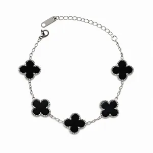 دستبند مدل ونکلیف یکی از جدیدترین و ترندترین محصولات بازار است. این محصول مشابه نمونه های طلا میباشد ولی بسیار اقتصادی تر از طلا. این دستبند 5 عدد گل دارد. محصول دارای رنگ ثابت است و جنس آن استیل ضد زنگ است.
