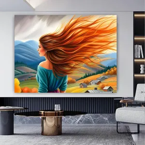تابلو بوم طرح مخمل زن روستایی مدل دشت گندم کد BK24978