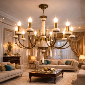 لوستر کلاسیک کریستالی و سرامیکی با بدنه طلایی–کرم لوستری لوکس و چشمنواز با طراحی کلاسیک، ساختهشده از ترکیب فلز آبکاریشده طلایی، شیشه تزئینی و کریستالهای شفاف. شاخههای خمیده، کاسههای سرامیکی و آویزهای کریستالی، جلوهای مجلل و نورپردازی درخشان ایجاد میکنند. انتخابی ایدهآل برای پذیراییهای بزرگ، فضاهای رسمی و دکوراسیونهای لوکس کلاسیک.