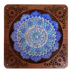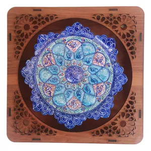 بشقاب میناکاری به قطر ۱۶ سانت در قاب چوبی