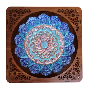 بشقاب میناکاری به قطر ۱۹.۵ سانت در قاب چوبی