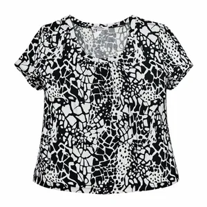 بلوز آستین سه ربع یقه هفت زنانه افراتین مدل آنا پلنگی