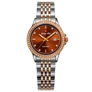 ساعت مچی عقربهای کوارتز زنانه بین باند مدل اسپرت کلاسیک بند استیل زیر ثانیه قفل مخفی کد 002
