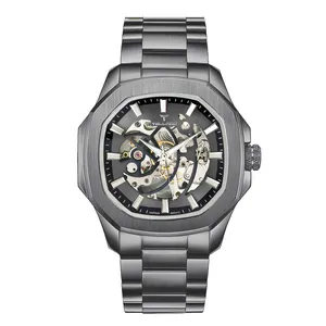 ساعت مچی عقربهای کوارتز مردانه بین باند مدل لوکس کلاسیک تک موتور صفحه نیمه اسکلتون قفل مخفی کد BN02