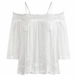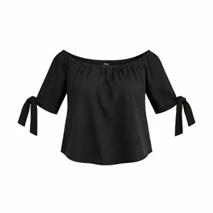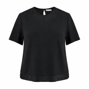 بلوز آستین کوتاه یقه باز زنانه مدل خامه دوزی