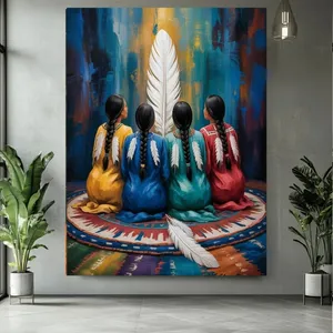 پوستر پارچه ای طرح مخمل بانوان و پر مدل سرخپوستان بومی کد BK25017