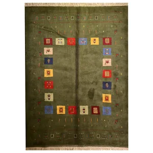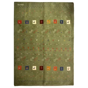 گبه دستبافت سه متری طرح قشقایی زمینه سبز کد NKP.RJ138