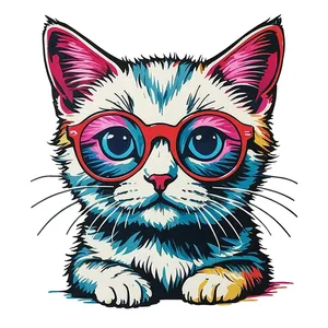 استیکر پارچه و لباس پاد آفرین مدل کارتونی طرح گربه کیوت بامزه کد S5418