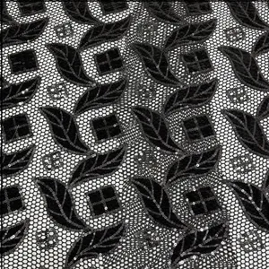 پارچه لباس عرض 1.3 متر مدل والا طرح مخمل گیپور مجلسی رنگ مشکی