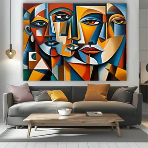 پوستر پارچه ای طرح مخمل انتزاعی مدل چهره های تو در تو کد PY508