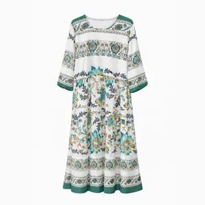 پیراهن ساحلی یقه گرد زنانه مدل پایین حاشیه 3