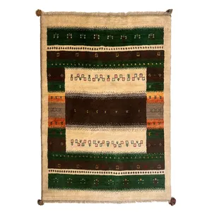گبه دستبافت قشقایی سه متری کد NKP.RJ0027 زمینه سبز