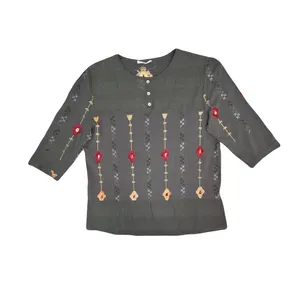 بلوز آستین بلند یقه گرد زنانه مدل رنگین