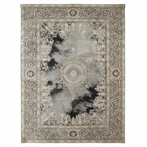 فرش ماشینی 1200 شانه زمینه نقرهای حاشیه مشکی مدل ورساچه