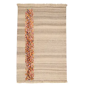 این گلیم ذهنی بافت بوده و از نقشه خاصی تبعیت نمیکند. ذهنی بافت بودن این گلیمها باعث میشود تا نگارههای این دست بافتهها نظم و قاعده مشخصی نداشته باشند. همین موضوع نیز بر جذابیت آن میافزاید. رنگهایی که به عنوان نخهای گلیم استفاده میکنند، کاملا طبیعی بود و از محیط زندگی عشایر گرفته میشود.این گلیم بافت اصفهان است.این گلیم به صورت دو رو بافته شده به گونه ای که هر دو طرف آن مثل یکدیگر است و از هر دوطرف میتوان استفاده کرد.اگر علاقهمند به سبکهای مینیمال و ساده هستید و از طرف دیگر دوست دارید فضایتان از هنراصیل وسنتی ایرانی خالی نباشد این گلیم به شما کمک خواهد کرد. طرح ایکیا
