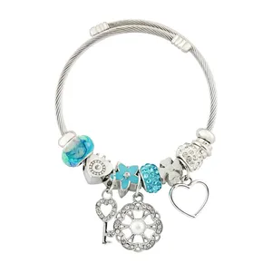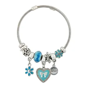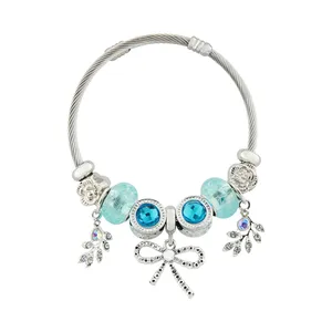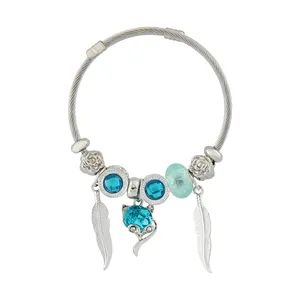 طراحی پایه این دستبند به صورت النگویی (مفتول پیچخورده) است که مقاومت بالایی دارد و فرم دایرهای خود را به خوبی روی دست حفظ میکند. جذابیت اصلی این مدل در ترکیب آویزهای فلزی آن از جمله جغد (نماد خرد)، درخت زندگی، قلب و فیل است که در لابهلای مهرههای نگیندار مشکی و یک گوی شیشهای آبیرنگ چیده شدهاند. این تضاد رنگی ظریف (نقرهای، مشکی و آبی) باعث میشود دستبند به راحتی با انواع استایلهای روزمره، جین و اسپرت ست شود. این کالا یک انتخاب دوستداشتنی برای استفاده شخصی و یا هدیه دادن به دختران و بانوان جوان است.