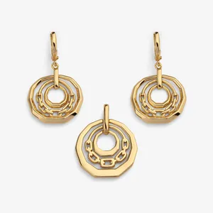 طراحی سه بعدی و لایهای: ساختار سه لایه این نیمست، عمق و شکوه خاصی به آن بخشیده است. هر لایه با دقت فراوان و با فواصل استاندارد در کنار هم قرار گرفتهاند تا فرم اشکی پلاک و گوشوارهها به زیباترین شکل ممکن دیده شود.