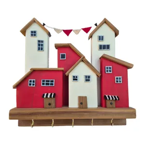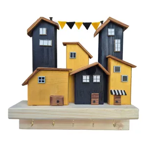 جاکلیدی دیواری دستساز با طراحی الهامگرفته از خانههای شهری مدرن، ساخته شده از چوب طبیعی با ترکیب رنگ مشکی، سفید و سقفهای قهوهای گرم. این محصول علاوه بر کاربردی بودن، یک المان دکوراتیو خاص برای ورودی منزل، دفتر کار یا اتاق خواب است.