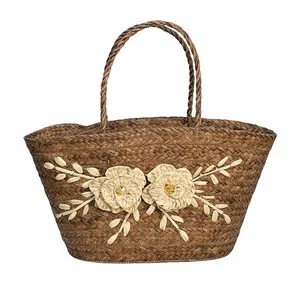 سبد حصیر بافی مدل آبشار طرح گلدار