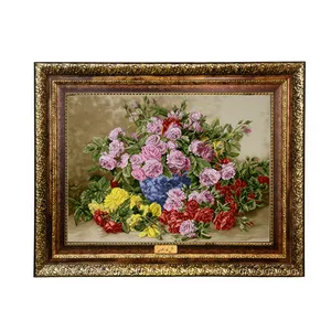 تابلو فرش ماشینی نقش نگار رضوی طرح گل کد 2474C
