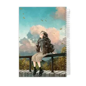 دفتر خط دار قطع پالتویی صحافی چسب و دوخت 80 برگ کاغذ 105 گرمی رنگ نخودی جلد سخت مقوایی طرح روی جلد دختر روی نرده
