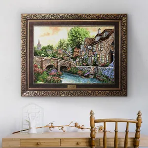 تابلو فرش ماشینی نقش نگار رضوی طرح منظره روستایی کد 740CB
