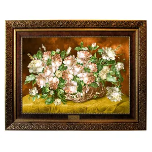 تابلو فرش ماشینی نقش نگار رضوی طرح گل کد 2520A