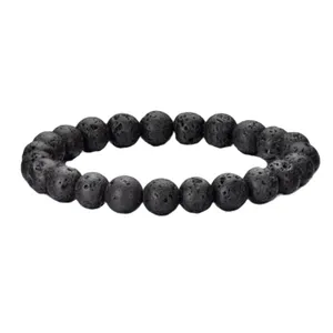 دستبند مردانه کاملا دست ساز است و از سنگ لاوا مشکی مات تهیه شده است.