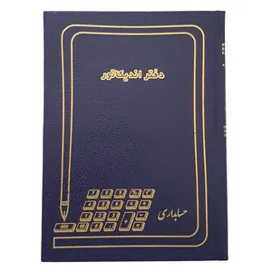 دفتر حساب کالا به صورت ریالی دارای ستون های نام و شماره با حروف های مخطلف در 14 صفحه و صفحه های دیگر با ستون های (تاریخ شماره شرح واردات صادراتت موجودی )میباشد.جنس جلد این دفتر گالینگو و با کاغذ سفید درجه یک و برای جلوگیری از برگ برگ شدن دفتر با صحافی دوخت میباشد.