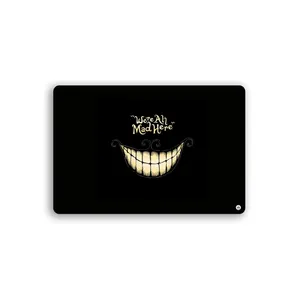 خیلی دوسش دارم اولش زردی دندون هاش خیلی تو ذوقم زد داخل عکس فرو شگاه دندون هاش سفید تره ولی در واقعیت کاملا زرده ول دیگه عادی ده برام کیفیت چاپش خوبه واضحه کاملا . برای افرادی که نمیدونن عکس لبخند گربه دخل فیلم آلیس در سرزمین عجایبه متن روش هم دیالوگ مشهورشه به معنی ما همه دیوانه هستیم . خیلی خوبه موس روش راحت حرکت میکنه . جنس زیرش حالت پلاستیک داره از روی میز جابجا نمیشه دور دوزی نداره به مرور زمان پارچه روش کنده میشه پس بهتره خودتون اطرافش رو بدوزید . خوبه در کل . تصویر اصلیو مجبور شدم کیفتشو کم کنم برای اپلود شدن تار شد . ولی واضحه در اصل .