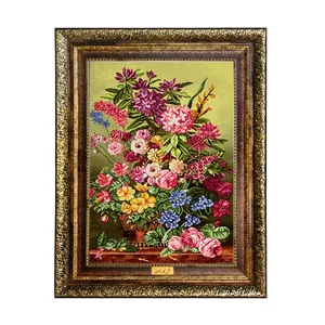 تابلو فرش ماشینی نقش نگار رضوی طرح گل کد 2090KH