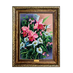 تابلو فرش ماشینی نقش نگار رضوی طرح گل کد 2390H