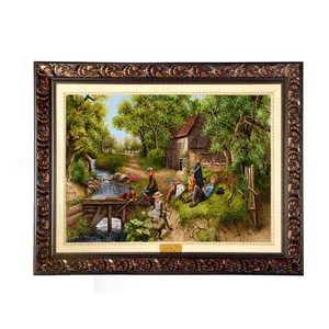 تابلو فرش ماشینی نقش نگار رضوی طرح خانه روستایی کد 744B