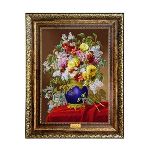 تابلو فرش ماشینی نقش نگار رضوی طرح گل کد 675KH