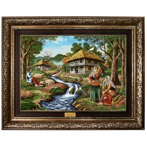 تابلو فرش ماشینی نقش نگار رضوی طرح روستا کد 1188H