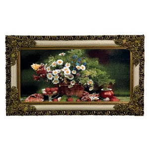 تابلو فرش ماشینی طرح سبد گل و قوری کد ۷۳۵۹