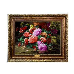 تابلو فرش ماشینی نقش نگار رضوی طرح گل کد 2401H