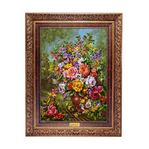 تابلو فرش ماشینی نقش نگار رضوی طرح گل کد 460KC