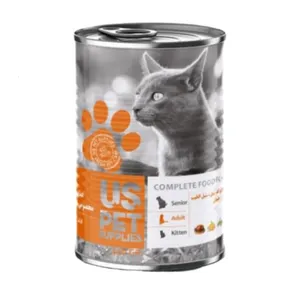 کنسرو غذای گربه یو اس پت مدل Chicken & Veal with Turkey وزن 400 گرم
