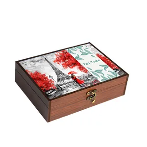 جعبه چای و نسکافه با طرح های بسیار زیبا و متفاوت دارای 4 قسمت جهت چای و یک قسمت جهت نسکافه سایز این محصول 16×21×6 طرج های روی درب چاپ مستقیم روی چوب بوده و قابل تمیز کردن با دستمال مرطوب میباشد و درطی زمان هیچ تغییر رنگی در ان ایجاد نمیشود .