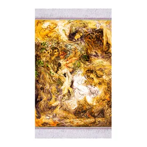 فرش ماشینی دیوارکوب اطلس آبی طرح نقاشی لندن و برج بیگ بن و درخت مدل T1006