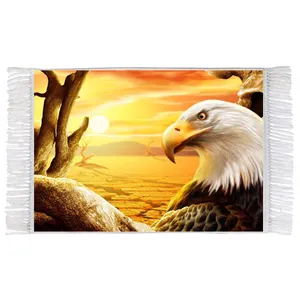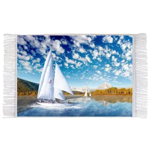 فرش ماشینی دیوارکوب اطلس آبی طرح کشتی و دریا و پرنده مدل T1023
